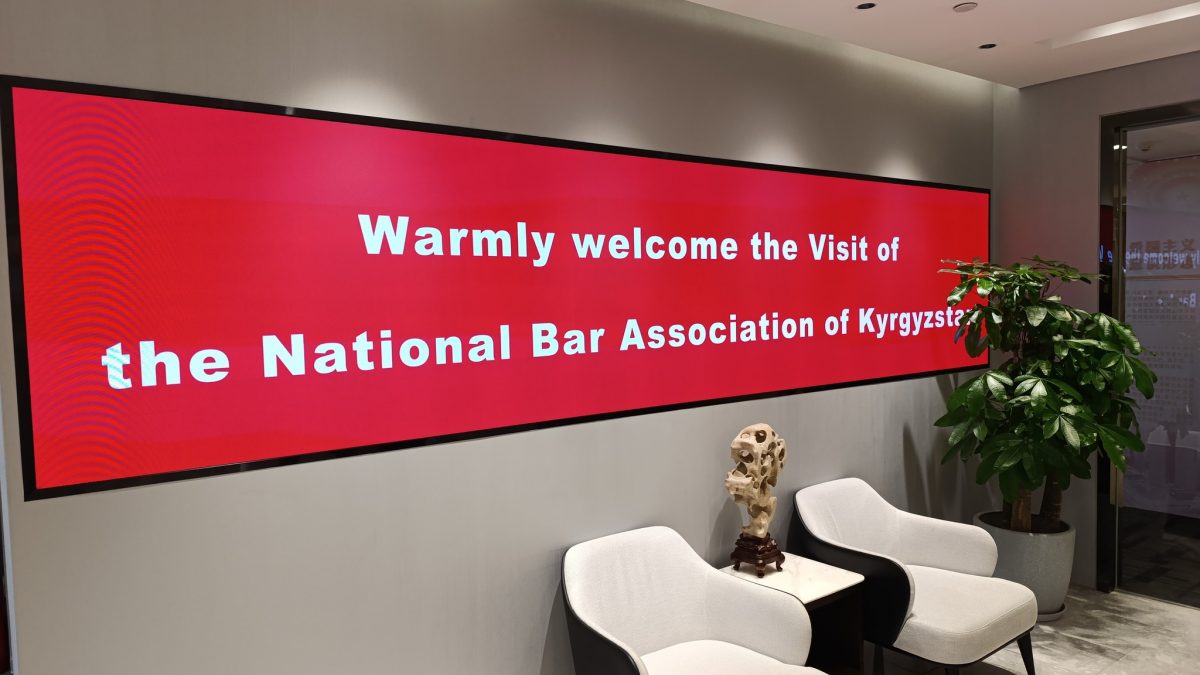 В фойе крупной Пекинской юридической фирмы DADA встречающая сторона на LED-экранах разместила приветственную надпись на английском языке о визите в их офис коллег из Ассоциации адвокатов Кыргызстана. Несмотря на воскресный день и занятость своими личными делами, President of All China Lawyers Association Zicheng Gao и его заместитель Zhang Yao нашли время и прибыли в свой роскошный офис, где встретились с коллегами из Кыргызской Республики.